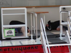 起震車体験では、身を守るための「ダンゴムシのポーズ」を教えていただき実践しました。