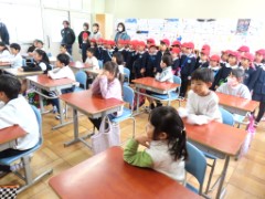 128()、暁幼稚園5歳児の皆さんが富洲原小学校を見学に来てくれました。
