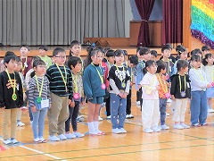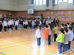 代表委員会の子ども達が上手に進行してくれたおかげで、あたたかい雰囲気の迎える会になりました。