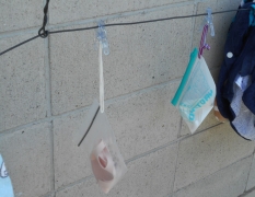 準備体操の後は、マスクを保管袋に入れます。