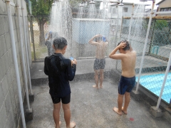 いつもなら「キャーキャー」叫ぶ地獄のシャワーも、今年はだまって我慢我慢。