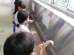 洗い残しがなくなるよう、改めて手洗いの正しい仕方を学びました。