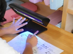 ③「手洗いチェッカー」に手をかざします。洗い残しがあると、白く浮かびます。
