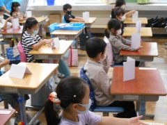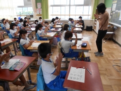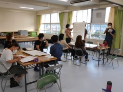 放課後、今日の授業を振り返り、教職員で研修会を行いました。
