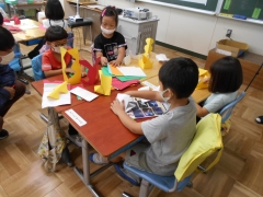 友だちの作品や言葉をヒントに自分でイメージをふくらませて、オリジナルの作品ができました。