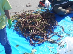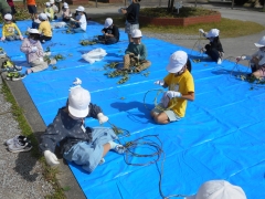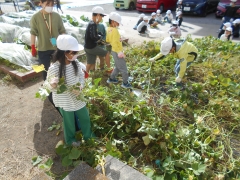 まず、班で順番に、いものつるを抜きました。