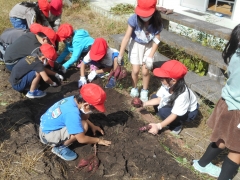 ★1年生が、生活科の時間に、学習園で育ててきたさつまいものいもほりをしました。