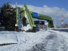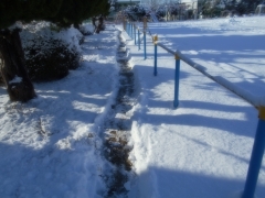 歩道橋以外にも通学路は凍っている箇所が多く,すべってこけそうになりながらも,子どもたちは十分気をつけて登校していました。