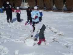 雪合戦をしたり,雪だるまを作ったり,子どもたちは大はしゃぎで雪遊びを楽しんでいました。