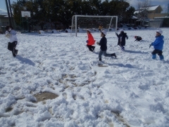 ★朝の会が終わると,3限目には2年生,4限目には1年生が生活科で,休み時間には,全学年の子が元気に雪遊びをしました。