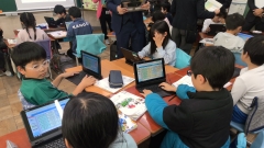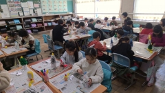 4年生の図工では、画用紙に主人公のパーツを作り、それをわりピンでとめて、いろいろな動きができるようにします。完成した作品は、少しずつ動きを変えていき、写真を撮ってアニメーションのような作品を作る予定です。今日は、まず作品の主人公づくりをしていました。どこを動かせるようにするとよいのか、どのように止めるといいのかを考えながら真剣に取り組んでいました。どんなアニメーションができるのかとても楽しみです。