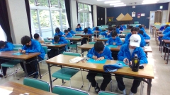 本日、内部地区で行われた防災訓練に、本校から生徒会を中心とした9名の生徒が参加しました。今年度は「災害対策本部」の活動を体験するプログラムに参加し、災害時における情報収集と整理の重要性を学びました。