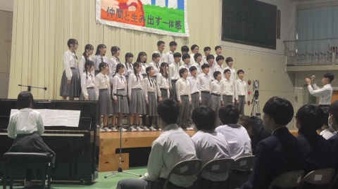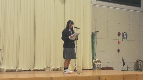 副会長挨拶「文化祭を終えて」三年生の合唱に感動しました。来年も頑張りたいです。