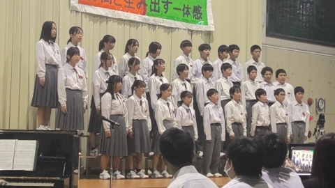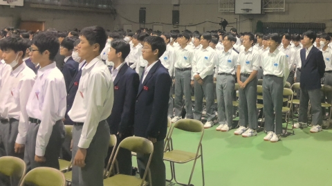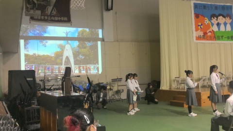 学校長挨拶「展示発表・舞台発表」を終えて、「すばらしい文化祭でした」「各学年合唱コンクールに取り組む姿勢が日に日によくなっていました。クラスの良さがあふれていました。昨日の展示発表もしっかりと、じっくりと拝見しました。素晴らしい作品ばかりでした。本日の舞台発表で吹奏楽部の演奏、全国で銀賞という素晴らしい成績、私たちは、一流の音楽に触れる機会に恵まれています。音楽を楽しむ喜びがあふれていました。3年生の総合の発表では、平和学習の原爆ドームの前での合唱は、当日訪れていた人たちに感動を与えていました。素晴らしいものでした。これらの内部中学校の伝統をぜひ引き継いでいってほしいです。