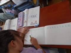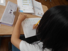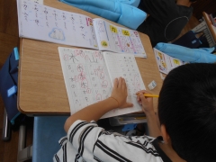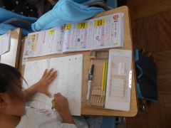 教室には、これまでに学習した軌跡が掲示され、子どもたちは思考のヒントにしています。