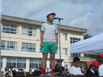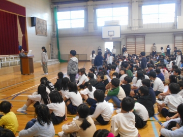 代表員会委員長は、全校児童に向けて抱負を語りました。ともに良い学校を作っていきましょうね。