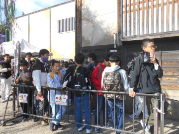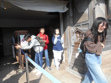 最後は、楽しみにしていた太秦映画村です。名物のお化け屋敷は50分待ちでした。それでも並ぶ子、怖いからやめるという子など様々でした。