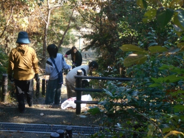 この豊かな森を維持管理していくため、「森づくり三重」の方にお世話になっています。そして毎月1回、森づくり三重の方の指導の下、PTAの方にもボランティアとして森の草刈りや落ち葉拾いなどをしていただいています。いつもありがとうございます。