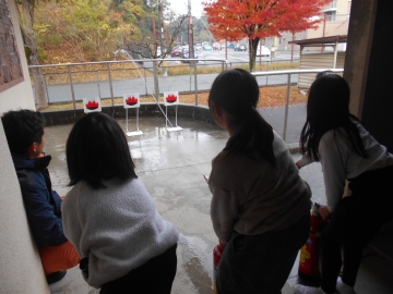 11月初めに収穫したサツマイモを焼いもにして食べました。朝早くから、はげまし隊の方たちが来てくれて、火を焚く準備をしてくださいました。子どもたちも薪を運ぶ手伝いをしました。また教室では、サツマイモを濡らした新聞紙で包み、それをアルミホイルで包む作業をしました。とても大変な作業でしたが、子どもたちはがんばりました。