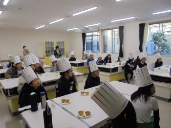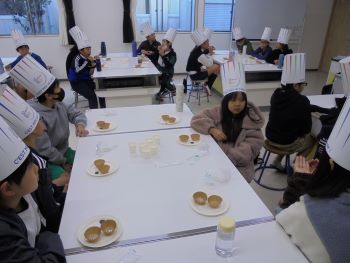 甘味・塩味・酸味・苦味・うま味の5つの味を1つずつ、自分の舌で感じる活動をしました。子どもたちは、ひとつひとつの味について感想を言い合いながら、じっくりと味わっていました。