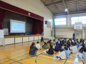 11月21日に、スタンドバイという会社の方に来ていただき、1年生から4年生を対象に、いじめ防止の出前授業を行っていただきました。この授業は、5,6年生に向けては、以前に行っていただいています。