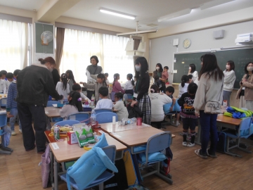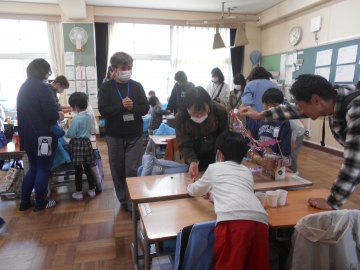 11月27日の5限目に授業参観を行いました。インフルエンザが流行っていて、学級閉鎖になっているクラスが2クラスありましたが、その他の学級については予定通り実施しました。子どもたちは、いつもと違った雰囲気なのか、少々緊張気味でした。1年生は、生活科で作ったおもちゃを使っておもちゃランドを開きました。保護者の方もお客さんになって参加していただき、盛り上がりました。たくさんの方にお越しいただきました。ありがとうございました。
