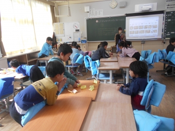学習の最後に、自分の成長をまとめる活動をしました。すごろくにまとめる子、巻物にする子、紙芝居にする子などいろいろでした。まとめたもの使って友達と発表し合いました。