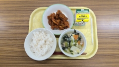 米飯 牛乳 鶏肉のチリソースがらめ ワンタンスープ