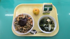ビビンバ 牛乳 豆腐とわかめのスープ みかん