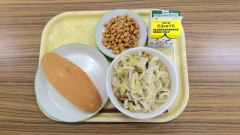 小型玄米パン 牛乳 地物たっぷり五目うどん フライビーンズ