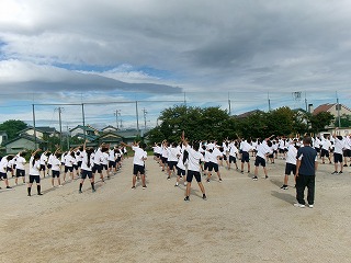 2年生は全体の基準となるクラスがあり、とても重要な役割を担っています。基準でないクラスも基準を意識してきれいに整列しましょう。本番も良い基準・整列となるように練習の成果を発揮してください。