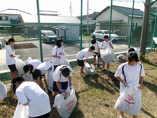 体育祭前日です。明日の体育祭に向けて、全校生徒で前日準備&除草作業を行いました。PTA除草作業として、保護者の方々も30名ご協力いただきました。ありがとうございました。また、9月30日には、事前作業として草を山にする作業に、50名を超えるボランティア生徒とともに、30名ほどのPTAの方々にご協力いただきました。重ねて感謝します。