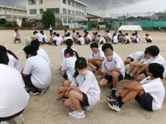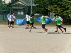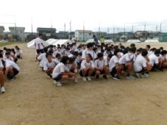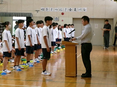 富田中、暁中との合同チームです。チームワークを高めて、明日も勝利を目指して頑張れ!