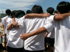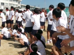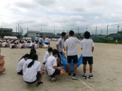 生徒会種目では綱引きを行います。全学年混合で作られたチームで行うので、学年を超えて関わる種目となります。2年生は後輩でもあり、先輩でもある立場です。3年生のリーダーを中心にチームが動いていますが、2年生にとっては来年のあなたたちの姿でもあります。全員が全員顔見知りで、仲良しなチームになる確率は、ほぼないでしょう。お互いを知らなくとも、チームの皆をまとめあげることができるリーダーに。リーダーを支えることができる3年生としての姿を、来年見ることができると信じて期待しています。
