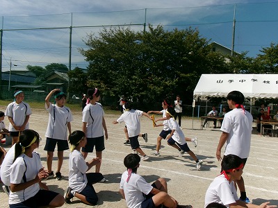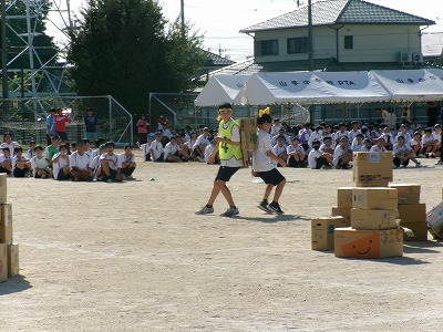 先週の金曜日の1限目に学年練習があり、学年種目「山手の宅急便」について練習しました。