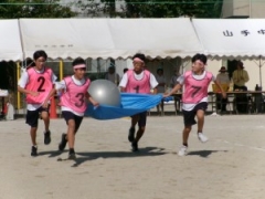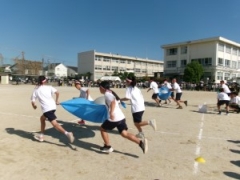 改めて2年生の学年種目は「蒼天突破」です。見た目もルールも面白い競技ですが、実際にやってみるとなかなか難しい競技です。2年生は何気なく飛ばしていましたが、4人1組で3mの高さを越えるように飛ばして、その後見事に受け止めるのはかなり大変です。それをあんなに楽しそうにできるのも2年生の凄いところだと感じています。