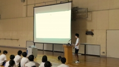 本日、人権学習の取り組みとしてクラス代表の発表会を体育館で行いました。