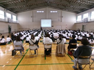 2年生の皆さんは、真剣な面持ちで話を聞いていました。