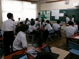 講師として三重県人権センターの方に来ていただき、一クラスずつメディアリテラシーについて学習しました。
