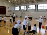 今日は、2年生が運動場で体育の学習をしていました。