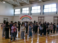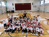 また、1年生には八郷こども園からお客さんが来ました。年長組の皆さんが八郷西小学校との交流会に来てくれました。