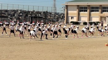 運動会二日前。昨日は、あいにくの雨で運動場では練習ができなかったためか、どの学年も、時間いっぱい使って団体・個人(徒競走)・表現の練習をしていました。ほんの少し、時間を延長して取り組んでいる学年もありました。低学年では、本番に使用するポンポンを持ちながら踊っていました。いよいよ完成に近づいています。